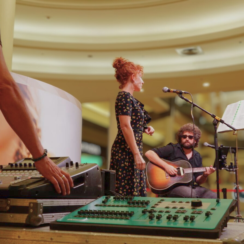 Un evento musical en vivo organizado en un centro comercial para sorprender y amenizar a los visitantes mientras disfrutan de sus compras. El evento presenta una serie de conciertos acústicos y actuaciones en vivo de artistas locales, situados estratégicamente en diferentes puntos del centro comercial. Los músicos tocan una variedad de géneros musicales, desde pop hasta jazz, y crean una atmósfera relajada y dinámica que invita a los transeúntes a detenerse y disfrutar del espectáculo sin interrumpir su experiencia de compra. Para hacer la experiencia aún más interactiva, los artistas invitan al público a participar en pequeñas actividades, como adivinanzas musicales o cantar una canción con ellos, creando una conexión especial entre los músicos y el público.
